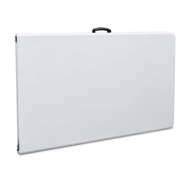 Tavolo pieghevoli leggero e duraturo, con piano in polietilene resistente ai graffi, spessore bordo 5cm e spigoli arrotondati.